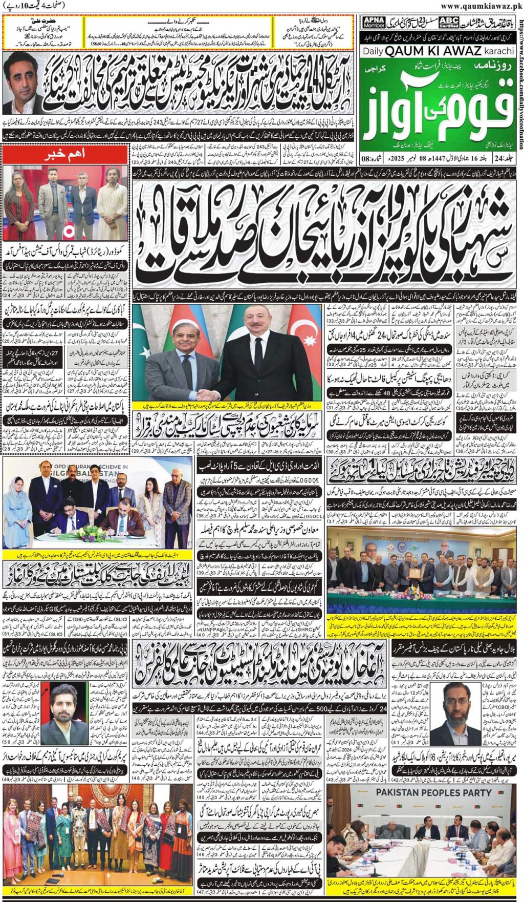 آج کا اخبار تازہ ترین روزنامہ قوم کی آواز کراچی 08 نومبر2025 admin November 7, 2025 1 min read AdvertisementsAdvertisements Post Views: 93 Continue Reading Previous: روزنامہ قوم کی آواز کراچی 07 نومبر2025Next: روزنامہ قوم کی آواز کراچی 10 نومبر2025 Leave a Reply Cancel replyYour email address will not be published. Required fields are marked *Comment * Name * Email * Website Save my name, email, and website in this browser for the next time I comment. Related Stories روزنامہ قوم کی آواز کراچی 6 دسمبر 2025 1 min read آج کا اخبار تازہ ترین روزنامہ قوم کی آواز کراچی 6 دسمبر 2025 December 5, 2025 روزنامہ قوم کی آواز کراچی 5 دسمبر 2025 1 min read آج کا اخبار تازہ ترین روزنامہ قوم کی آواز کراچی 5 دسمبر 2025 December 4, 2025 روزنامہ قوم کی آواز کراچی 4 دسمبر 2025 1 min read آج کا اخبار تازہ ترین روزنامہ قوم کی آواز کراچی 4 دسمبر 2025 December 3, 2025