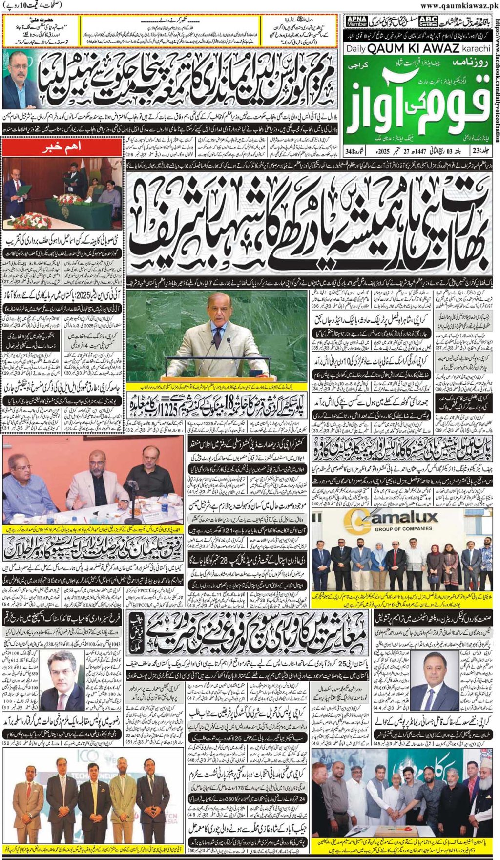 آج کا اخبار تازہ ترین روزنامہ قوم کی آواز کراچی 27 ستمبر2025 admin September 26, 2025 1 min read AdvertisementsAdvertisements Post Views: 71 Continue Reading Previous: روزنامہ قوم کی آواز کراچی 26 ستمبر2025Next: روزنامہ قوم کی آواز کراچی 30 ستمبر2025 Leave a Reply Cancel replyYour email address will not be published. Required fields are marked *Comment * Name * Email * Website Save my name, email, and website in this browser for the next time I comment. Related Stories روزنامہ قوم کی آواز کراچی 17 اکتوبر2025 1 min read آج کا اخبار تازہ ترین روزنامہ قوم کی آواز کراچی 17 اکتوبر2025 October 16, 2025 سونا آسمان پر، عوام زمین پر! پاکستان میں سونے کی قیمت نے تاریخ رقم کردی — اصل کہانی ہوش اُڑا دینے والی 1 min read پاکستان تازہ ترین سونا آسمان پر، عوام زمین پر! پاکستان میں سونے کی قیمت نے تاریخ رقم کردی — اصل کہانی ہوش اُڑا دینے والی October 16, 2025 عمران خان نے اپنے دور میں جلاد اور فرعون دونوں کا کردار نبھایا، عظمیٰ بخاری کا سخت وار 1 min read پاکستان تازہ ترین عمران خان نے اپنے دور میں جلاد اور فرعون دونوں کا کردار نبھایا، عظمیٰ بخاری کا سخت وار October 16, 2025
