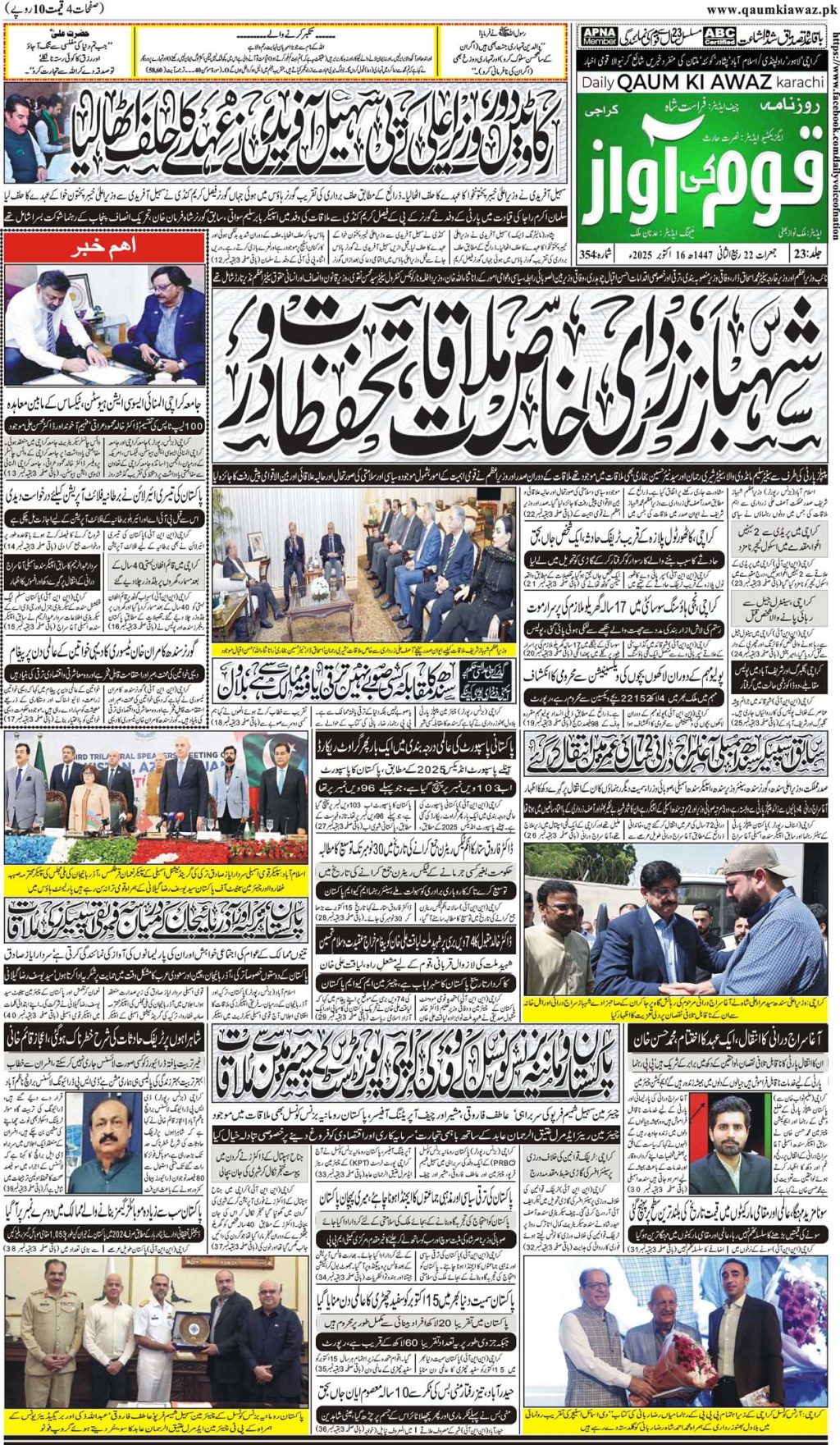 آج کا اخبار تازہ ترین روزنامہ قوم کی آواز کراچی 16 اکتوبر2025 admin October 15, 2025 1 min read AdvertisementsAdvertisements Post Views: 6 Continue Reading Previous: شادی نہیں، ماں بننے کا خواب! سشمیتا سین کا انکشاف — ’’21 سال کی عمر میں بیٹی گود لینا آسان نہ تھا‘‘ Leave a Reply Cancel replyYour email address will not be published. Required fields are marked *Comment * Name * Email * Website Save my name, email, and website in this browser for the next time I comment. Related Stories شادی نہیں، ماں بننے کا خواب! سشمیتا سین کا انکشاف — ’’21 سال کی عمر میں بیٹی گود لینا آسان نہ تھا‘‘ 1 min read تازہ ترین شوبز/انٹرٹینمنٹ شادی نہیں، ماں بننے کا خواب! سشمیتا سین کا انکشاف — ’’21 سال کی عمر میں بیٹی گود لینا آسان نہ تھا‘‘ October 15, 2025 عوام کے لیے بڑی خوشخبری! پیٹرول کی قیمت میں نمایاں کمی کا امکان — مہنگائی سے ریلیف کی نوید! 1 min read پاکستان تازہ ترین عوام کے لیے بڑی خوشخبری! پیٹرول کی قیمت میں نمایاں کمی کا امکان — مہنگائی سے ریلیف کی نوید! October 15, 2025 سعد رضوی کے گھر سے اربوں کی کرنسی اور سونا برآمد؟ حیران کن انکشافات نے سب کو چونکا دیا! 1 min read پاکستان تازہ ترین سعد رضوی کے گھر سے اربوں کی کرنسی اور سونا برآمد؟ حیران کن انکشافات نے سب کو چونکا دیا! October 15, 2025